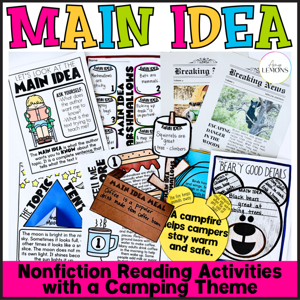 Main Idea & Details Nonfiction Reading Camping Activity | Topic & Central Idea