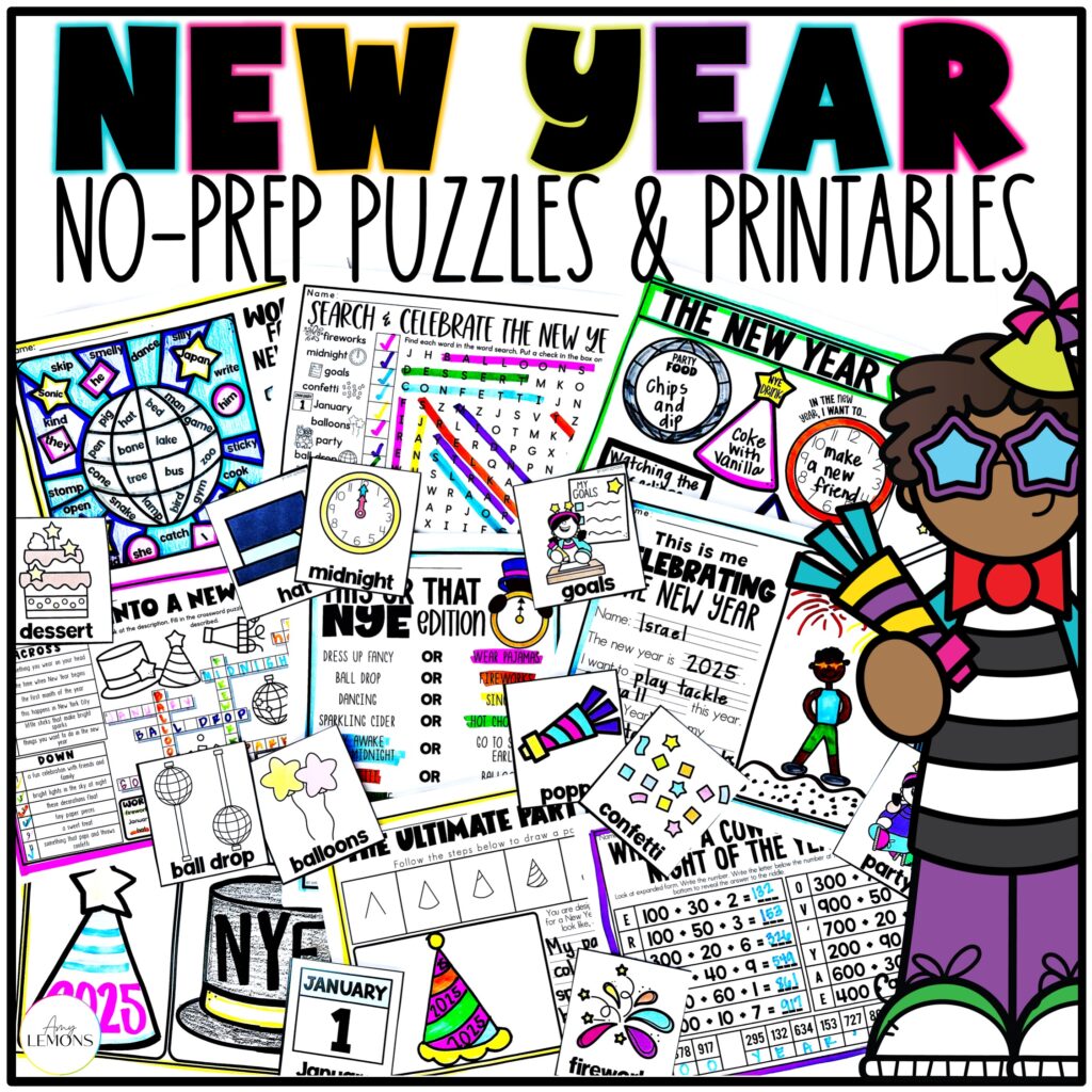 New Year Printables: Word Search Worksheets, Math & Color | New Years Morning Work